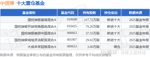 重仓中信博的公募基金请见下表:
