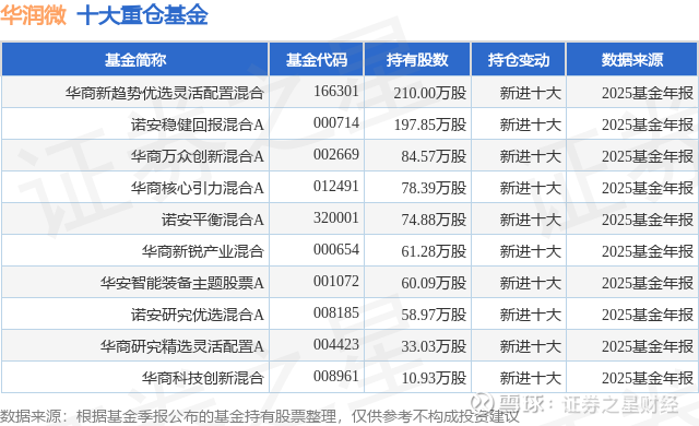 重仓华润微的前十大公募基金请见下表: