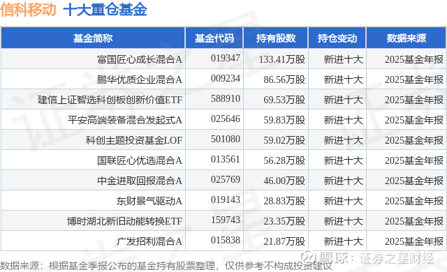 重仓信科移动的前十大公募基金请见下表: