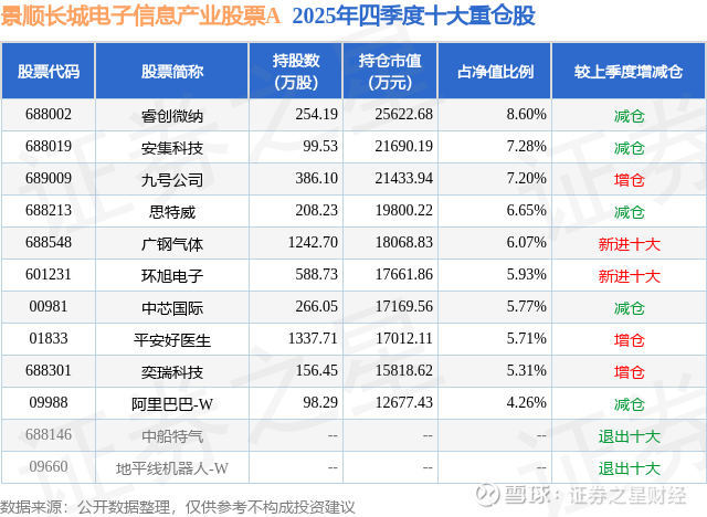 根据2025基金年报公募基金重仓股数据,重仓该股的公募基金共50家,其中持有数量最多的公募基金为景顺长城基金的景顺长城电子信息产业股票A。景顺长城电子信息产业股票A目前规模为20.31亿元,最新净值1.8357(1月28日),较上一交易日下跌0.53%,近一年上涨53.27%。该公募基金现任基金经理为杨锐文。杨锐文在任的基金产品包括:景顺长城优选混合,管理时间为2014年10月25日至今,期间收益率为370.15%;景顺长城环保优势股票,管理时间为2016年3月15日至今,期间收益率为357.2%;景顺长城创新成长混合,管理时间为2019年10月17日至今,期间收益率为117.62%;景顺长城成长领航混合,管理时间为2020年5月28日至今,期间收益率为82.8%。