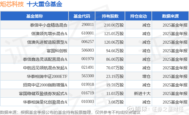 根据2025基金年报公募基金重仓股数据,重仓该股的公募基金共14家,其中持有数量最多的公募基金为泰信基金的泰信中小盘精选混合。泰信中小盘精选混合目前规模为14.52亿元,最新净值5.513(1月28日),较上一交易日下跌0.04%,近一年上涨49.89%。该公募基金现任基金经理为董季周。董季周在任的基金产品包括:泰信鑫选灵活配置混合A,管理时间为2020年11月24日至今,期间收益率为40.18%。
