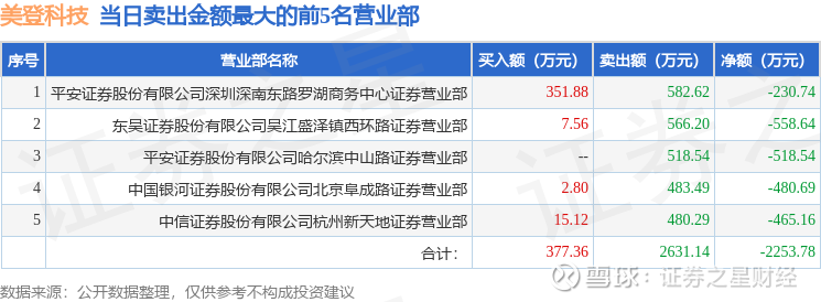 证券之星消息,沪深交易所2026年1月29日公布的交易公开信息显示,美登科技(920227)因当日换手率达到20%的前5只股票登上龙虎榜。此次是近5个交易日内第1次上榜。