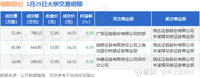 证券之星消息,1月29日福鞍股份发生大宗交易,交易数据如下: