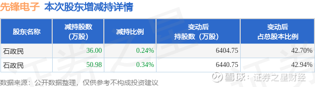 证券之星消息,1月29日先锋电子发布公告《先锋电子:简式权益变动报告书》,其股东石政民于2026年1月28日至2026年1月29日间合计减持86.98万股,占公司目前总股本的0.5799%,变动期间该股股价下跌9.35%,截止1月29日收盘报21.81元。