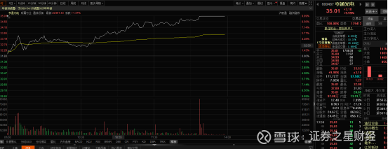 1月30日,光通信板块表现强势,概念股集体走强。其中,亨通光电开盘后稳步上扬,午后封住涨停。截至发稿,该股报价35.01元/股。