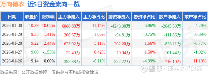 1月30日的资金流向数据方面,主力资金净流入6888.88万元,占总成交额11.14%,游资资金净流出4243.38万元,占总成交额6.86%,散户资金净流出2645.5万元,占总成交额4.28%。