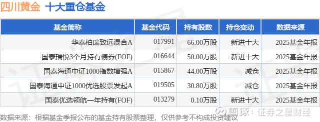 根据2025基金年报公募基金重仓股数据,重仓该股的公募基金共5家,其中持有数量最多的公募基金为华泰柏瑞基金的华泰柏瑞致远混合A。华泰柏瑞致远混合A目前规模为1.23亿元,最新净值1.8768(1月29日),较上一交易日上涨0.85%,近一年上涨92.96%。该公募基金现任基金经理为叶丰。叶丰在任的基金产品包括:华泰柏瑞锦瑞债券A,管理时间为2024年6月14日至今,期间收益率为25.2%;华泰柏瑞锦华债券A,管理时间为2025年3月25日至今,期间收益率为5.46%;华泰柏瑞安盛一年持有期债券A,管理时间为2025年7月9日至今,期间收益率为3.46%。