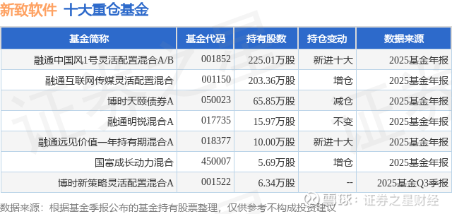 重仓新致软件的公募基金请见下表: