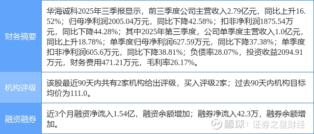 2026年1月21日,中邮证券研究员吴文吉,翟一梦发布了对华海诚科的研报《携手衡所华威,强化先进封装与车规级封材布局》,该研报对华海诚科给出“买入”评级。研报中预计公司2025/2026/2027年分别实现收入3.8/10.1/12.6亿元,归母净利润分别为0.26/1.03/1.39亿元,维持“买入”评级。证券之星数据中心根据近三年发布的研报数据计算,该研报作者对此股的盈利预测准确度为66.15%。