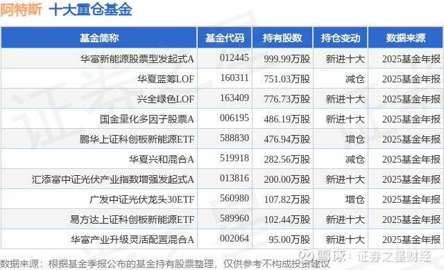 重仓阿特斯的前十大公募基金请见下表: