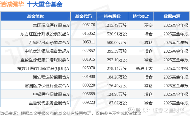 重仓诺诚健华的前十大公募基金请见下表: