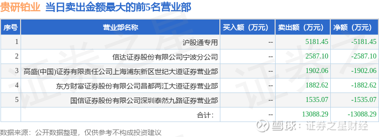 证券小知识:龙虎榜是交易所披露的竞价交易公开信息,现身龙虎榜的个股都是当日最为活跃的个股,是投资者日常重点关注的数据。交易所公布当日买入金额和卖出金额前五名的席位,其中一些席位代表特殊意义,如机构专用席位是指基金专用席位、券商自营专用席位、社保专用席位、券商理财专用席位、保险机构专用席位、保险机构租用席位、QFII专用席位等机构投资者买卖证券的专用通道和席位。深股通专用、沪