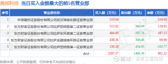 证券之星消息,沪深交易所2026年1月30日公布的交易公开信息显示,美邦科技(920471)因当日换手率达到20%的前5只股票登上龙虎榜。此次是近5个交易日内第3次上榜。