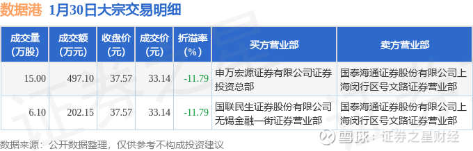 证券之星消息,1月30日数据港发生大宗交易,交易数据如下: