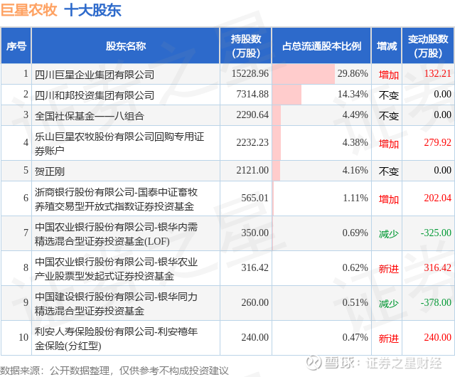 根据巨星农牧2025年三季报公布的十大股东详情如下: