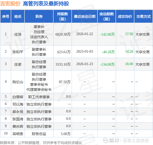 吉宏股份的高管列表及最新持股情况如下: