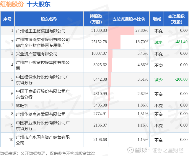 根据红棉股份2025年三季报公布的十大股东详情如下: