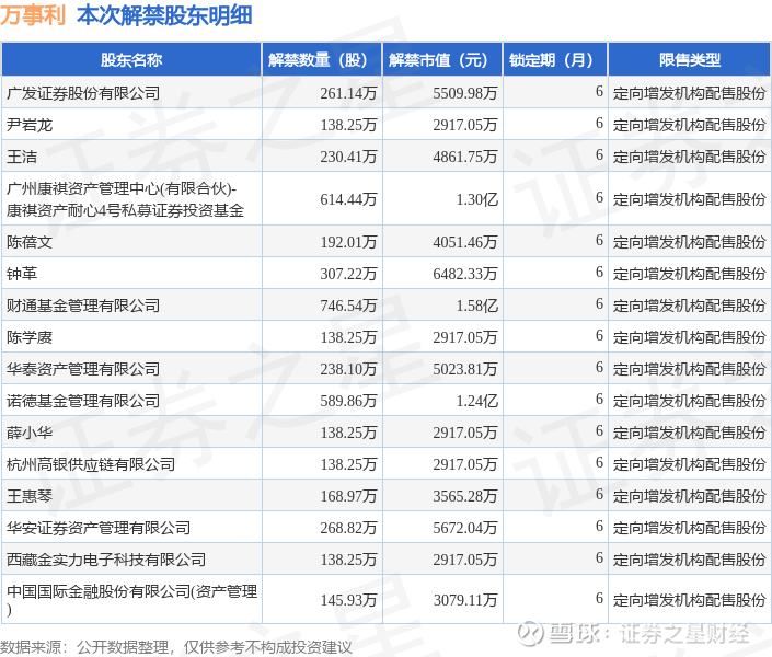 本次解禁涉及股东明细见下表: