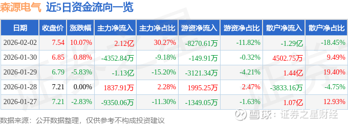 证券之星消息,森源电气2月2日涨停收盘,收盘价7.54元。该股于9点45分涨停,未打开涨停,截止收盘封单资金为6930.62万元,占其流通市值0.99%。