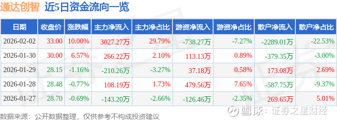 2月2日的资金流向数据方面,主力资金净流入3027.27万元,占总成交额29.79%,游资资金净流出738.27万元,占总成交额7.27%,散户资金净流出2289.01万元,占总成交额22.53%。