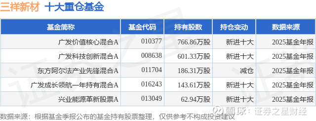 重仓三祥新材的公募基金请见下表: