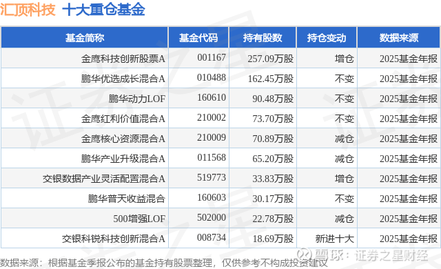 根据2025基金年报公募基金重仓股数据,重仓该股的公募基金共16家,其中持有数量最多的公募基金为金鹰基金的金鹰科技创新股票A。金鹰科技创新股票A目前规模为26.08亿元,最新净值2.1067(1月30日),较上一交易日下跌1.16%,近一年上涨44.03%。该公募基金现任基金经理为陈颖。陈颖在任的基金产品包括:金鹰核心资源混合A,管理时间为2019年1月26日至今,期间收益率为280.62%;金鹰红利价值混合A,管理时间为2020年4月28日至今,期间收益率为195.71%;金鹰科技致远混合A,管理时间为2024年3月19日至今,期间收益率为94.5%。