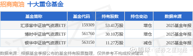 根据2025基金年报公募基金重仓股数据,重仓该股的公募基金共3家,其中持有数量最多的公募基金为汇添富基金的汇添富中证油气资源ETF。汇添富中证油气资源ETF目前规模为0.59亿元,最新净值1.3877(1月30日),较上一交易日下跌1.51%,近一年上涨44.73%。该公募基金现任基金经理为晏阳。晏阳在任的基金产品包括:汇添富中证上海环交所碳中和ETF,管理时间为2022年7月13日至今,期间收益率为6.26%;汇添富中证A100ETF,管理时间为2022年10月20日至今,期间收益率为39.32%;汇添富北证50成份指数A,管理时间为2022年12月27日至今,期间收益率为50.55%;汇添富中证上海环交所碳中和ETF发起式联接A,管理时间为2023年3月14日至今,期间收益率为27.86%。