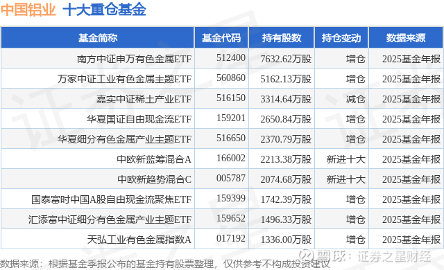 重仓中国铝业的前十大公募基金请见下表: