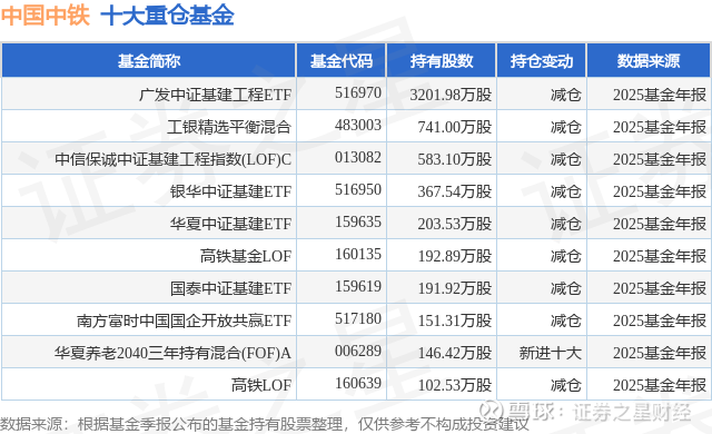重仓中国中铁的前十大公募基金请见下表: