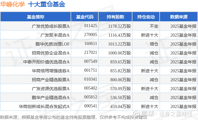 重仓华峰化学的前十大公募基金请见下表: