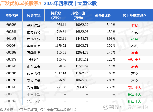 根据2025基金年报公募基金重仓股数据,重仓该股的公募基金共42家,其中持有数量最多的公募基金为广发基金的广发优势成长股票A。广发优势成长股票A目前规模为19.88亿元,最新净值0.6693(1月30日),较上一交易日下跌2.29%,近一年上涨81.38%。该公募基金现任基金经理为苏文杰。苏文杰在任的基金产品包括:广发聚丰混合A,管理时间为2024年10月25日至今,期间收益率为74.84%;广发资源优选股票A,管理时间为2025年6月17日至今,期间收益率为63.35%;广发成长动力三年持有混合A,管理时间为2025年7月2日至今,期间收益率为30.07%。