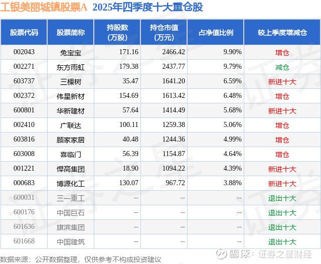 根据2025基金年报公募基金重仓股数据,重仓该股的公募基金共12家,其中持有数量最多的公募基金为工银瑞信基金的工银美丽城镇股票A。工银美丽城镇股票A目前规模为2.38亿元,最新净值2.284(1月30日),较上一交易日下跌1.68%,近一年上涨41.78%。该公募基金现任基金经理为母亚乾。母亚乾在任的基金产品包括:工银稳健成长混合A,管理时间为2024年8月7日至今,期间收益率为49.94%;工银核心机遇混合A,管理时间为2024年12月10日至今,期间收益率为84.43%;工银行业优选混合A,管理时间为2025年10月20日至今,期间收益率为2.22%。
