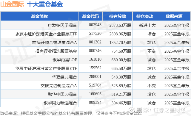 重仓山金国际的前十大公募基金请见下表: