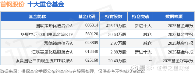 根据2025基金年报公募基金重仓股数据,重仓该股的公募基金共4家,其中持有数量最多的公募基金为国联基金的国联策略优选混合A。国联策略优选混合A目前规模为6.82亿元,最新净值3.0177(1月30日),较上一交易日下跌1.06%,近一年上涨58.75%。该公募基金现任基金经理为王喆 叶天垚。王喆在任的基金产品包括:国联高股息混合A,管理时间为2024年5月29日至今,期间收益率为15.46%;国联智选先锋股票A,管理时间为2024年6月4日至今,期间收益率为87.17%;国联中证500指数增强A,管理时间为2024年8月20日至今,期间收益率为74.18%;国联沪深300指数增强A,管理时间为2024年11月26日至今,期间收益率为27.48%。叶天垚在任的基金产品包括:国联景盛一年持有混合A,管理时间为2025年4月9日至今,期间收益率为4.49%;国联稳健添益债券A,管理时间为2025年10月17日至今,期间收益率为1.34%;国联利率债A,管理时间为2025年11月3日至今,期间收益率为-0.09%。
