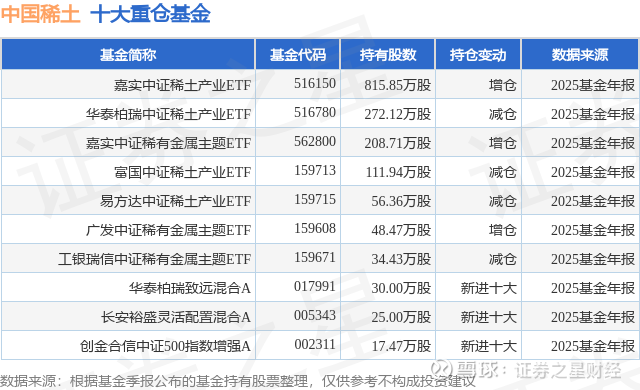 根据2025基金年报公募基金重仓股数据,重仓该股的公募基金共21家,其中持有数量最多的公募基金为嘉实基金的嘉实中证稀土产业ETF。嘉实中证稀土产业ETF目前规模为77.71亿元,最新净值2.0283(1月30日),较上一交易日下跌5.67%,近一年上涨95.88%。该公募基金现任基金经理为田光远。田光远在任的基金产品包括:嘉实中证软件服务ETF,管理时间为2021年6月4日至今,期间收益率为-9.18%;嘉实中证电池主题ETF,管理时间为2021年7月13日至今,期间收益率为-17.41%;嘉实中证稀土产业ETF联接A,管理时间为2021年8月3日至今,期间收益率为39.47%。