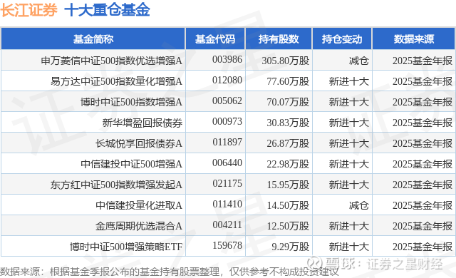 重仓长江证券的前十大公募基金请见下表: