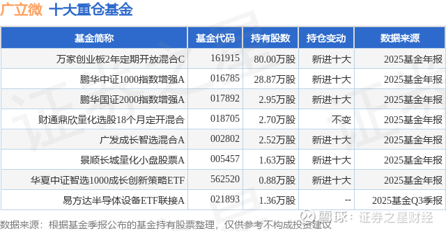 重仓广立微的公募基金请见下表: