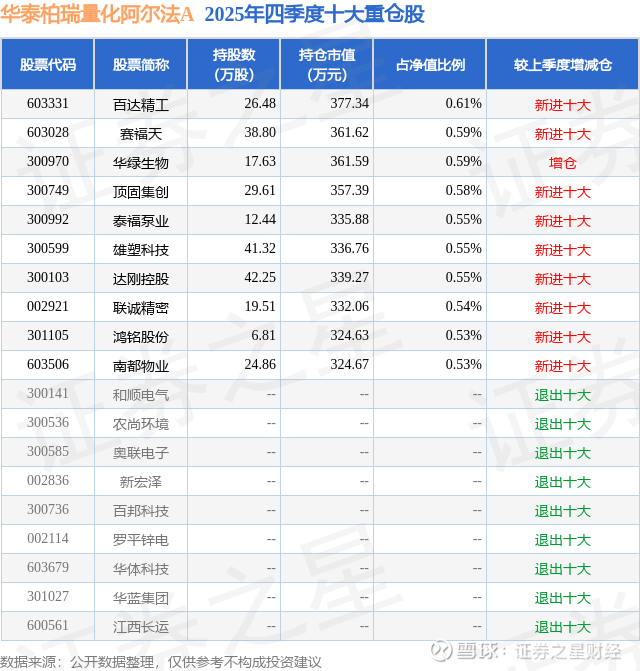 华泰柏瑞量化阿尔法A的前十大重仓股如下: