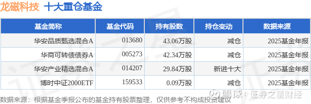 根据2025基金年报公募基金重仓股数据,重仓该股的公募基金共4家,其中持有数量最多的公募基金为华安基金的华安品质甄选混合A。华安品质甄选混合A目前规模为7.9亿元,最新净值1.3913(1月30日),较上一交易日下跌0.36%,近一年上涨58.3%。该公募基金现任基金经理为刘畅畅。刘畅畅在任的基金产品包括:华安文体健康混合A,管理时间为2020年1月8日至今,期间收益率为265.63%;华安安华灵活配置混合A,管理时间为2021年8月10日至今,期间收益率为65.48%;华安产业精选混合A,管理时间为2021年12月29日至今,期间收益率为35.24%;
