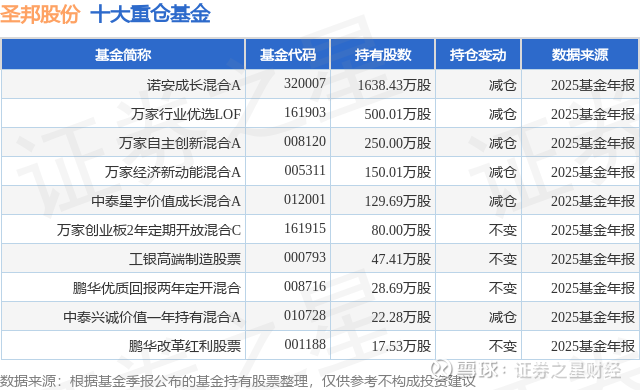 重仓圣邦股份的前十大公募基金请见下表:
