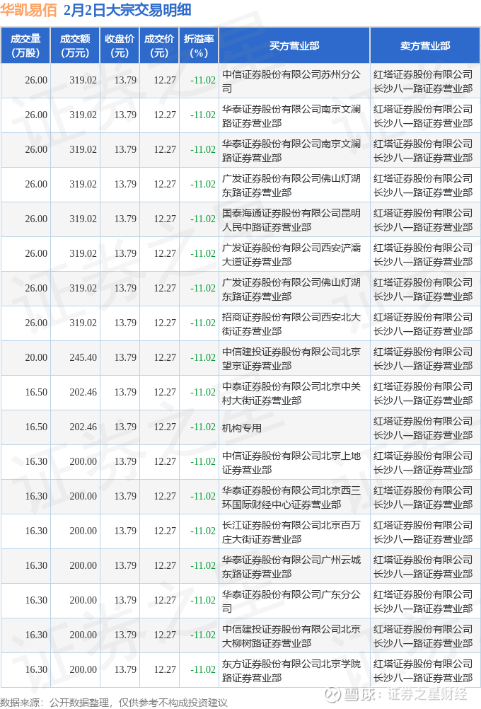 证券之星消息,2月2日华凯易佰发生大宗交易,交易数据如下: