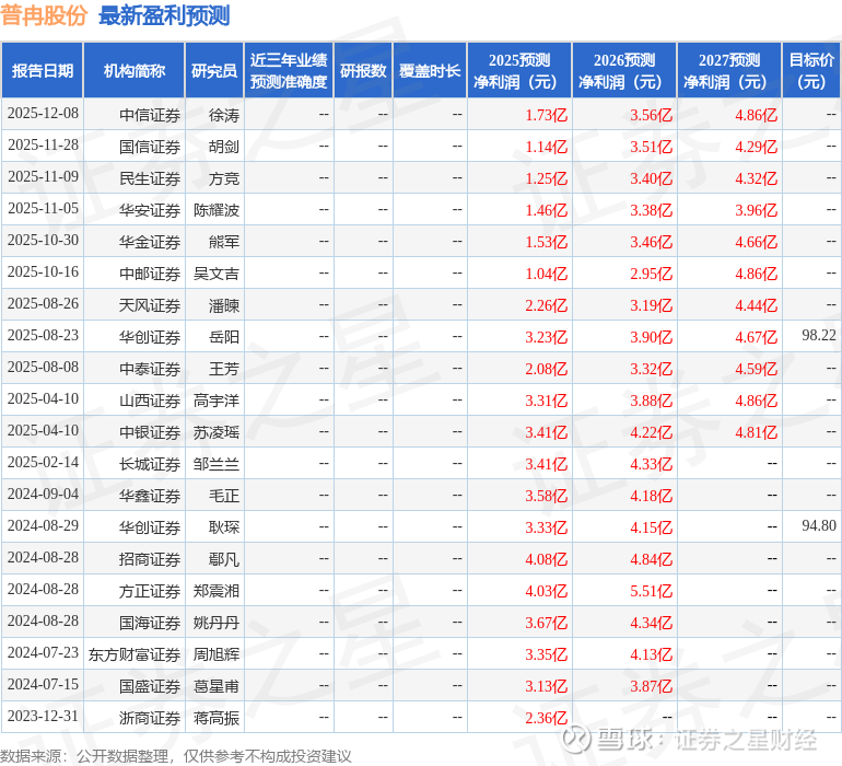 以下是详细的盈利预测信息: