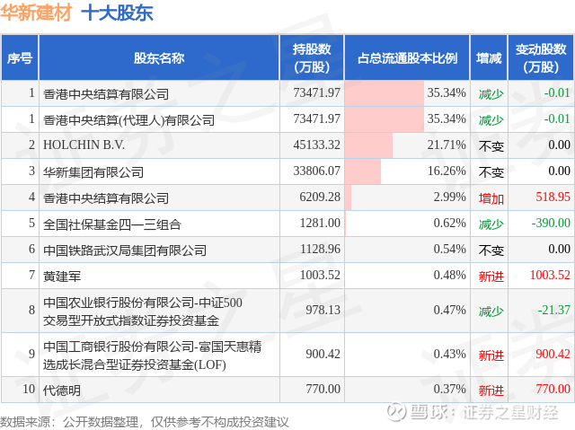 根据华新建材2025年三季报公布的十大股东详情如下: