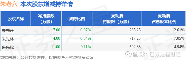 证券之星消息,2月2日朱老六发布公告《朱老六:股东减持股份结果公告》,其股东朱先松、朱先莲、朱先林于2025年11月15日至2026年1月19日间合计减持22.0万股,占公司目前总股本的0.2164%,变动期间该股股价上涨10.12%,截止1月19日收盘报25.02元。