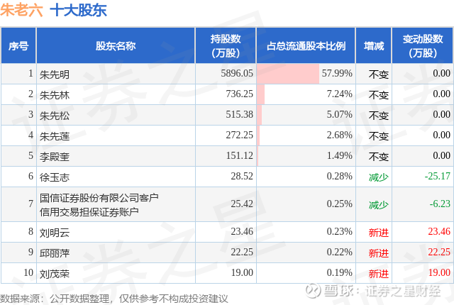根据朱老六2025年三季报公布的十大股东详情如下: