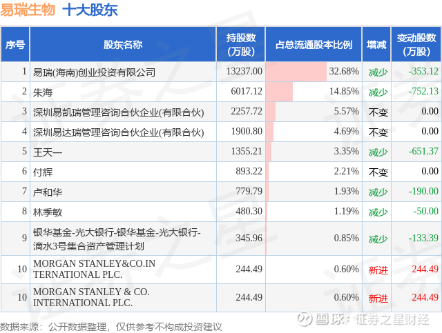 根据易瑞生物2025年三季报公布的十大股东详情如下: