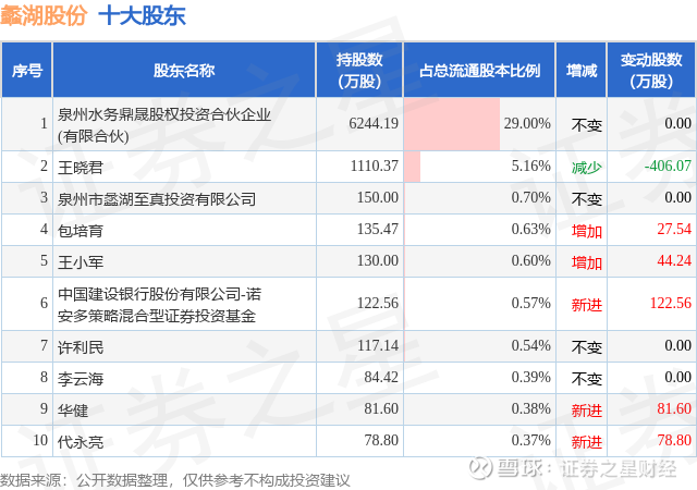 根据蠡湖股份2025年三季报公布的十大股东详情如下: