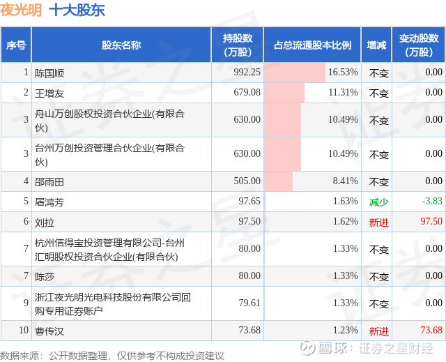 根据夜光明2025年三季报公布的十大股东详情如下: