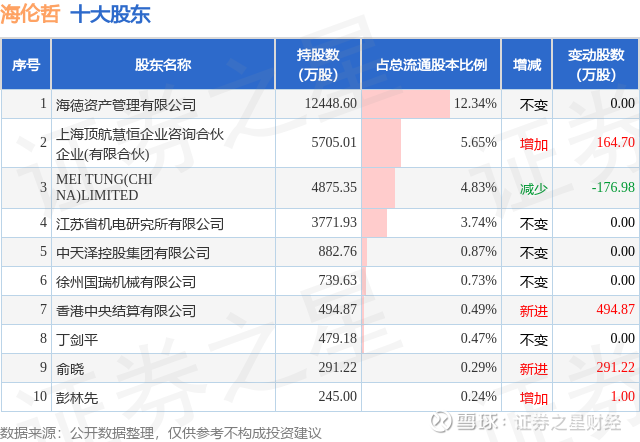 根据海伦哲2025年三季报公布的十大股东详情如下: