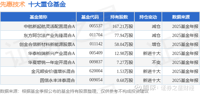 重仓先惠技术的公募基金请见下表: